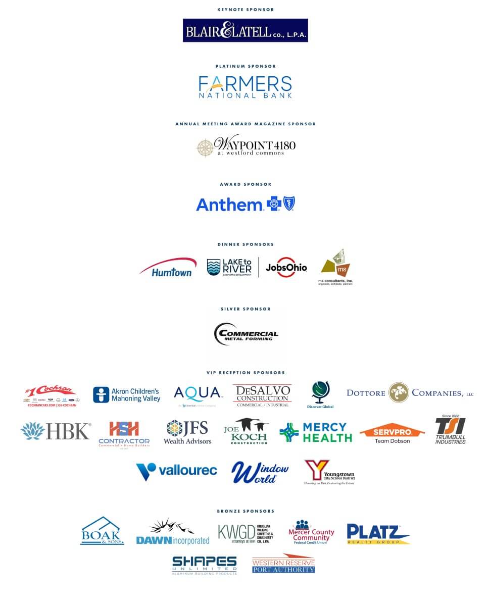 During the event, the Chamber will present the Valley Champion Award, honoring an individual whose influence and service have made a lasting impact on the Mahoning Valley. The Chamber will also recognize two outstanding business leaders with the Spirit of the Valley Award and the Spirit of the Chamber Award.