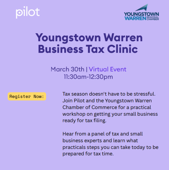 Tax season doesn’t have to be overwhelming. Join Pilot and the Youngstown/Warren Regional Chamber for a practical virtual workshop designed to help small business owners prepare for tax filing with confidence.